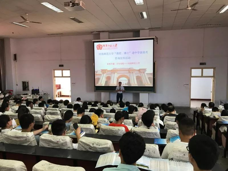 活动中,生命科学学院教师杨献光向在场的学生及家长播放了我校招生宣传片,并以问答的形式详细讲解了今年高招的形势变化、如何选择学校和专业、平行志愿填报技巧等相关专业问题,并对我校的基本情况、专业特色、奖助学措施等进行了简要介绍,使考生们对于今年高招形势和河南师大的优势有了更进一步的了解。
