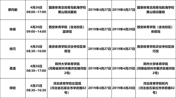 2019年体育单招全国统一考试报到时间及地点、考试时间、考试地点等详细情况正式公布。