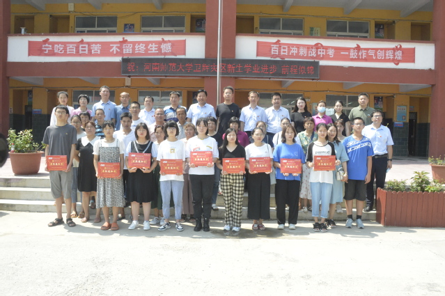 7月31日上午,我校在卫辉市庞寨乡中学举行卫辉灾区新生录取通知书发放仪式。校党委副书记陈广文出席仪式并讲话,卫辉市庞寨乡党委书记薛梦寒、乡长刘顺峰、我校相关部门负责人、相关学院党委副书记、卫辉籍新生代表与家长代表70余人参加了发放仪式。仪式由招生办公室主任康海军主持。