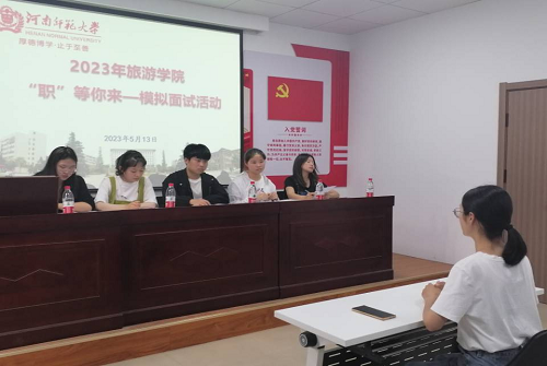 为引导青年学生从实际出发,树立正确的求职观和就业观,5月19日,旅游学院在琢玉楼第二会议室举办“职等你来”模拟面试活动。本次活动邀请法学院、环境学院及旅游学院五位经验丰富、具备面试技巧的学生担任评委。