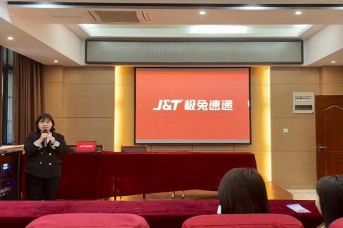 极兔速递是一家全球综合物流服务运营商,快递业务在全球规模最大及增长最快的东南亚和中国市场处于领先地位。极兔速递秉承“客户为本、效率为根”的宗旨,为客户提供全场景化的物流解决方案,让物流惠及全球,此次招聘会拟招收采购、物流营运、财税类等十二类岗位的人才。会议伊始,主持人播放2022届毕业生进入极兔速递工作体验的宣传片。极兔速递宣讲人刘静结合PPT详细讲解公司文化、招聘岗位及培训细节,帮助有意入职的同学更加深入地了解公司情况及工作性质。问题交流环节,同学们针对薪酬、工作时间、工作内容、晋升渠道、福利保障等问题进行提问,宣讲团队对同学们的疑问进行了详细解答并赠送极兔吉祥物,招聘会现场气氛十分融洽。