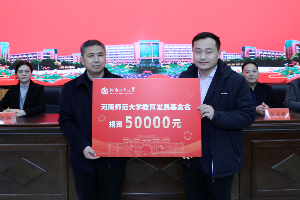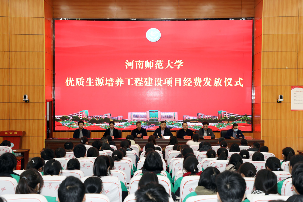 在“优质生源培养工程建设项目经费”发放仪式上,扶沟县高级中学党总支书记、校长万书桓致欢迎词,感谢师大为基层学校,特别是扶沟县高级中学输送优秀的师资力量,未来希望培养更多有着教育梦想、矢志教育事业的优秀学生进入师大学习。之后董长雨向扶沟县高级中学发放“优质生源培养工程建设项目经费”并讲话,他指出,优质生源培养工程的实施,既是两校多年来互联互通互信互利的“好结果”,也是未来共建共享共赢共荣的“新机遇”;师大作为百年名校,在办学历史、办学实力、办学特色、办学理念等方面有着自己的探索和发展,并取得了瞩目的成绩;希望扶沟县高级中学继续向师大推荐和输送优秀学子,为建立更加紧密、稳固、持久的合作育人联盟共同努力。