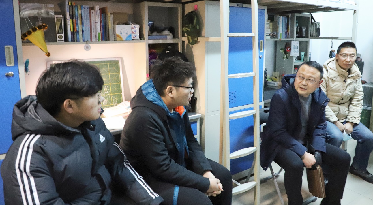 12月9日晚,文学院党政领导及党员教师深入走访学生宿舍,与学生展开亲切交流。