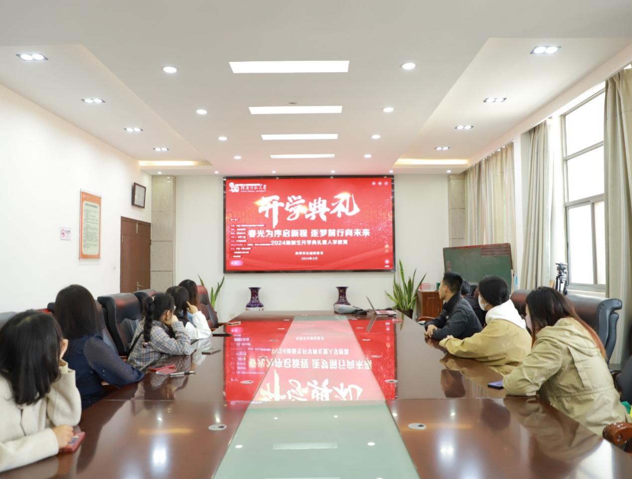 春光为序启新程,逐梦前行向未来。3月30日上午,河南师范大学高等学历继续教育2024级新生开学典礼暨入学教育在郑州崇德教育发展培训中心校外教学点隆重举行,继续教育学院、文学院和法学院相关负责人,以及2024级新生代表在主会场参加本次活动。文学院组织我院新生在学院二楼会议室同步在线收看直播典礼,典礼由继续教育学院副院长李醒东主持。