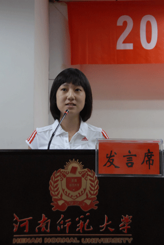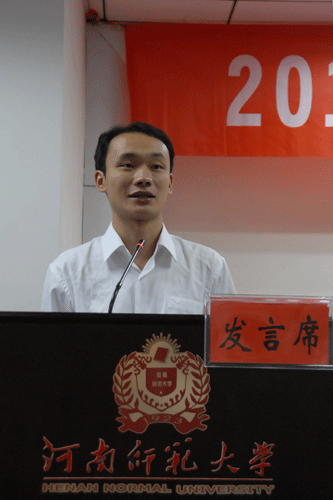 全国优秀学生干部、校团委副书记郭新闯代表高年级学生党员发言,寄语新生党员要牢记党员身份、坚定理想信念、奋力创先争优、永葆先进本色,以实际行动为党旗增辉,为师大添彩。文学院2010级广播电视新闻学专业王昱迪代表全体新生党员,感谢学校提供的难得培训机会,并表示在以后的日子里要事事为范、处处争先,无愧于共产党员的光荣称号。