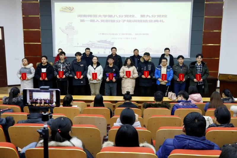 活动伊始,全体起立奏国际歌,软件学院党支部书记、第九分党校校长陈俊杰宣读了《河南师范大学第八分党校、第九分党校关于表彰第一期入党积极分子培训班优秀学员的决定》,希望受表彰的优秀学员珍视荣誉,进一步发挥先锋模范作用,随后与会领导为优秀学员颁发了荣誉证书。优秀学员代表计算机与信息工程学院2017级魏楠、软件学院2017级张鹏帅分别发言,他们回顾了这次培训班的学习内容和心得体会,并表示要继续深入学习党的理论知识,以实际行动争取早日加入党组织。